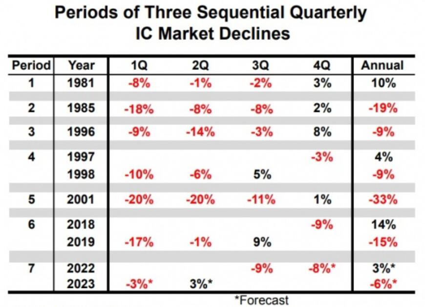 Según el analista, el mercado mundial de chips ha contratado solo seis trimestres consecutivos desde la década de 1970.