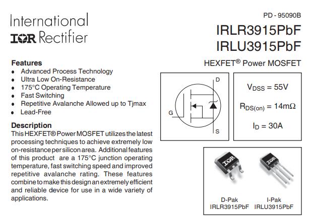 CasaNoticiasIRLU3915PBF HEXFET® POWER MOSFET 55V Single N-Channel HEXFET POWER MOSFET en un paquete i-pak