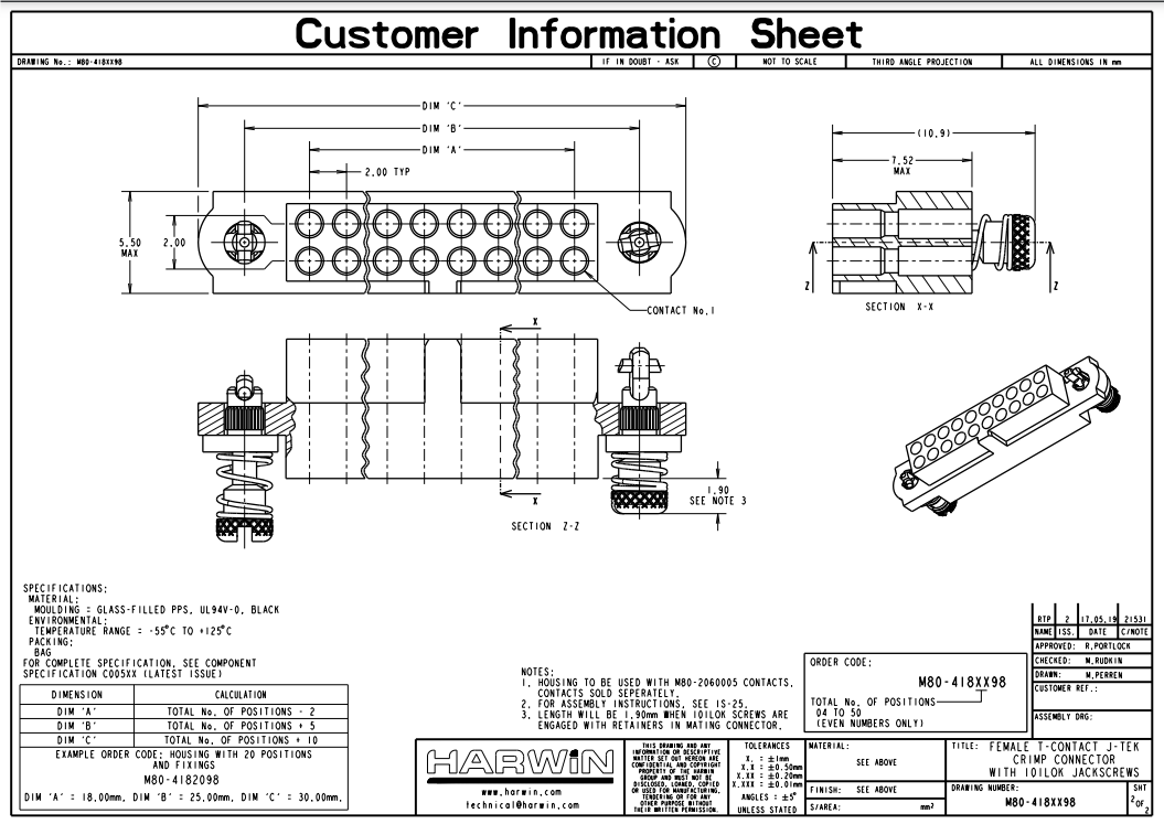 Ideal para su uso con M80-2060005 T-Contacto (22 AWG), pero también se puede usar con otros contactos de enjuague de señal femenina desde el rango de datamado.