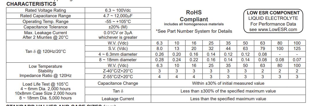 • Vida de carga extendida (2,000 ~ 5,000 horas @ +105 ° C)
