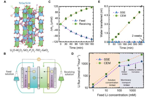 Inicialmente diseñada para la conducción de iones de litio en baterías de estado sólido, los SSE se han reutilizado para permitir un nivel de separación de iones sin precedentes.A diferencia de las membranas convencionales que usan poros a nanoescala para el transporte de iones, las SSE operan a través de un mecanismo de salto anhidro dentro de una red cristalina rígida.Esta estructura bloquea efectivamente los iones competidores como el sodio y el magnesio, lo que permite que solo pase el litio.